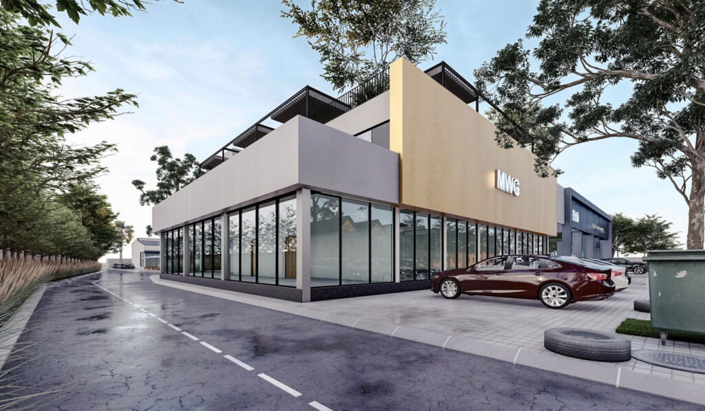 Hình minh họa: Trang trí văn phòng làm việc với một bức tường màu tạo điểm nhấn